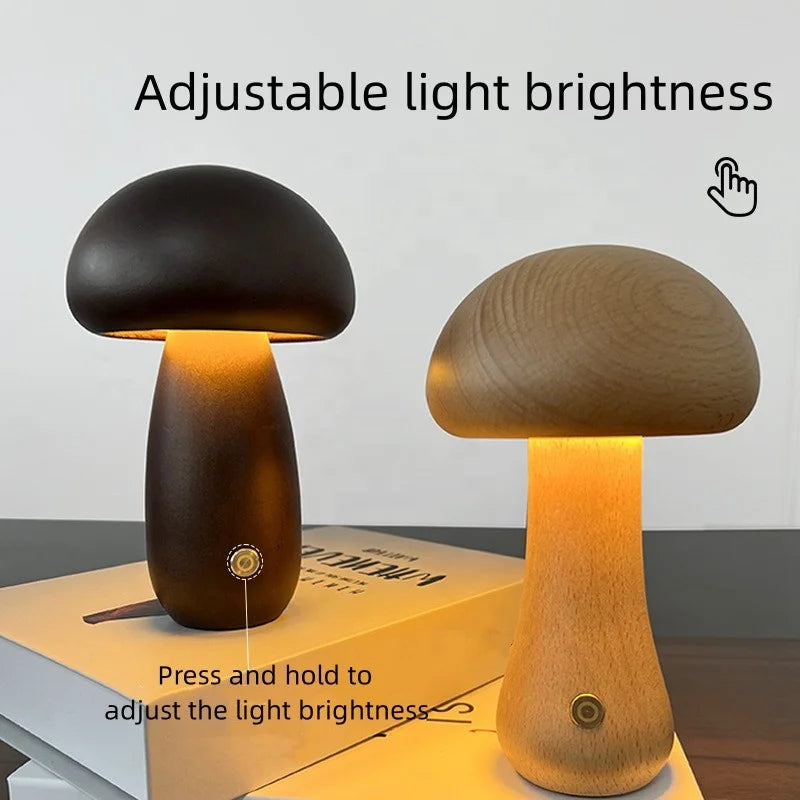 Doğal Ahşap Mantar Gece Lambası – Minimal & Sıcak Atmosfer Işığı